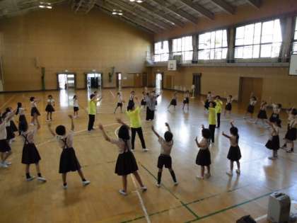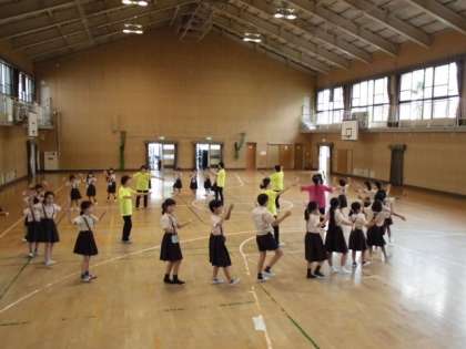 7月11日、12日の2日間、盆踊り練習会を行いました。2日間で延べ53名の児童が鶴見民踊会のみなさまに踊りを教えていただきました。「鶴見音頭」、「アラレちゃん音頭」、「チョイナ節」、「ビューティフルサンデー」の4曲を練習しました。何度も練習を繰り返し、踊りがそろってきました。暑い中でしたが、子どもたちも一生懸命で楽しそうでした。民踊会のみなさまありがとうございました。「盆踊りの時は黒い浴衣を着て踊るんです。」と嬉しそうに話してくれた子がいました。子どもたちはみんな当日を楽しみしているようです。盆踊り会は7月26日(金)、27日(土)に鶴見南小学校の運動場で開催されます。19時から子どもたちが踊る時間があります。ぜひ、ご家族でご参加ください。