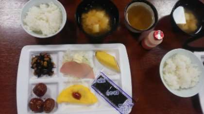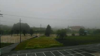 宿舎の部屋からの画像です(6時)雨です。朝のつどいの後、朝食をいただきました。