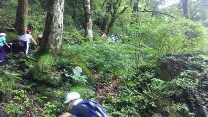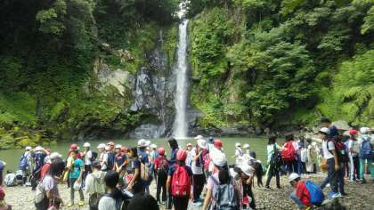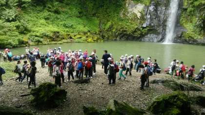 八反の滝です。急な下り坂を降りると雄大な滝が姿をあらわしました。
