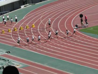 8月7日(水)、器械陸上クラブを中心に4,5,6年生の児童34名が、ヤンマースタジアム長居で行われた大会に参加しました。全員が参加した100m走ではみんな一生懸命に走り、全力を出し切りました。2位、3位に入賞した児童もおり、メダルをいただきました。2学期の始業式で校長先生より表彰していただく予定です。ただ、猛暑のため暑さ指数が「危険」レベルに達したため、4×100mリレーは中止となりました。練習をがんばってきただけに残念でしたが、児童の安全が第一ですからいたしかたありません。応援に着てくださった保護者のみなさま、暑い中ありがとうございました。