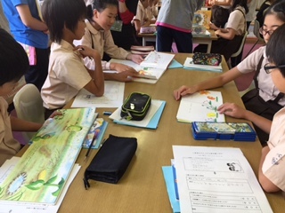 6年生は今日の授業で選んだ本についてさらに読書ゲームを工夫して、来週1年生に読み聞かせる予定です。