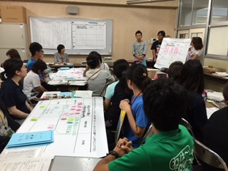 授業後には研究討議会をもち、参観した教員からは「6年生が1年生に本を楽しんでほしいという相手意識をもって本を選んでいる点がよかった。」「6年生が男女ペアで仲良く活動している姿がよかった。」等の意見がでました。
