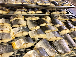 さごしの塩焼きは、料理酒、塩で下味をつけたさごしを、焼き物機で蒸し焼きにした、焼きもの料理でした。