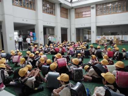 9月4日(水)。5時間目に台風接近に備えて、避難訓練を行いました。暴風警報が発令されたという想定で、地域ごとにすみやかに集団下校をする訓練です。これから台風の本格的な時期となります。ご家庭でも災害時の対応について話し合って備えてください。