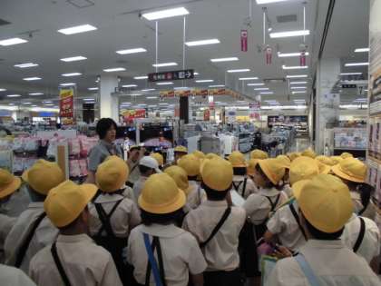 9月12日(木)、3年生が社会見学(イオン鶴見緑地店)に出かけました。お店を見学させていただき、売り場の工夫について調べてきました。班活動では、野菜売り場、冷凍食品売り場など7か所をそれぞれ調べました。売り場の店員さんに質問もさせていただきました。また、普段は入ることのできない、バックヤードやネットスーパーの仕分け場も見学させていただきました。イオン鶴見緑地店のみなさまありがとうございました。
