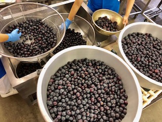 下段の写真は、巨峰を配缶(それぞれの教室に分配する作業)をしているところです。