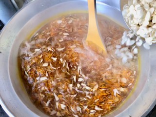 トックは、しいたけの戻し汁を合わせたチキンスープをベースに、にんじん、しいたけ、トック等が入った汁もの料理でした。