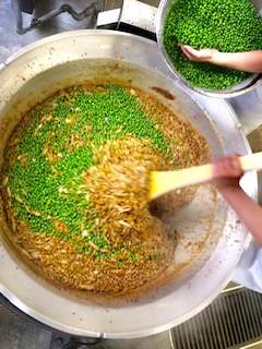 下段の写真は、キーマカレーにグリンピースを入れて仕上げているところです。