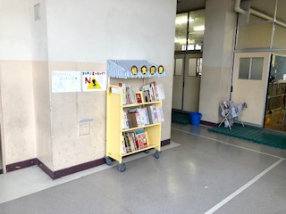 移動式給食図書コーナーは、4階の中央階段踊り場へ移動しました。
