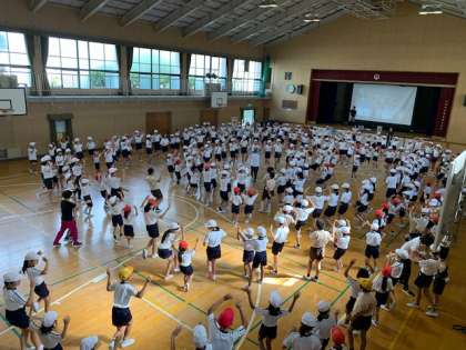 5時間目には6年生が1年生に「鶴見音頭」を教えました。6年生は先日民踊会に教えてもらった踊りを、1年生に親切に教えました。運動会当日に全学年で踊るのが楽しみですね。