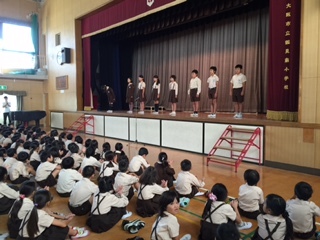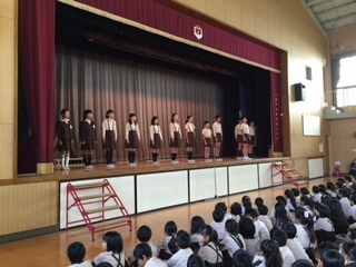 例えば図書委員長が「みんながもっと本を楽しむことができるように、いろいろな本を紹介していきます。」と言ったり、集会委員長が「みんなが楽しめる集会にしていきたいと思います。」等としっかりと抱負を発表しました。