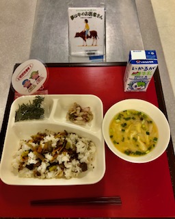 牛肉のきんぴらちらしは、具材に牛肉、ごぼう、にんじん、えだまめが入っている、混ぜご飯でした。教室でごはんと具を混ぜて食べました。