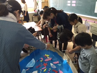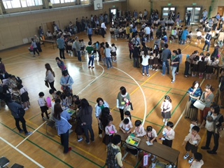 1年生は生活科で「昔遊びをしよう」をしました。地域の老人会である寿会の方々に来ていただいて、あやとりやお手玉などいろいろな遊びを教えてもらいました。参観の保護者も楽しく見守っておられました。