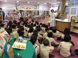 2年生の図書の時間には、指導補助をしてくださいました。2年生は今国語で、あまんきみこさんの「名前を見てちょうだい」を学習しています。そこで担任の先生からの要請で、あまんきみこさんの他の作品も紹介してもらい、「山ねこおことわり」を読み聞かせしてもらいました。子どもたちは目を輝かせて聞いていました。
