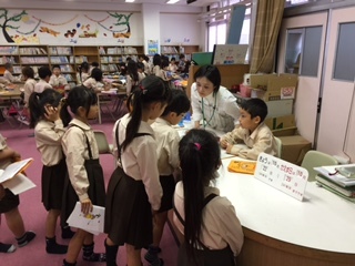 図書係さんには貸し出し・返却のしかたも教えてくださいました。これから図書の時間がますます楽しみになりますね。