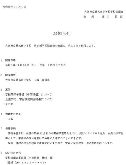 学校協議会の案内です。