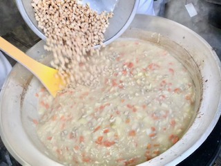 下段の写真は、クリームシチューにほたて貝を加えているところです。