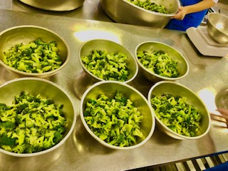 下段の写真は、ブロッコリーのサラダを配缶しているところです。