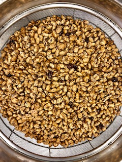 右側の写真は、出来上がったうずら豆のグラッセです。