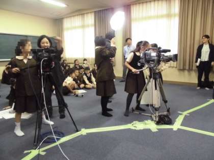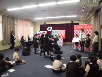 今日は、3年生が消防署へ出かけました。道中、雨に降られることもなく、予定通り社会見学ができました。5年生は、出前授業がありました(写真)。J-comさんのご指導でニュース番組作りをしました。ディレクターやカメラマン、アナウンサー、音響、インタビュアー、照明などいろいろな役割を分担して楽しいニュース番組を作ることができました。
