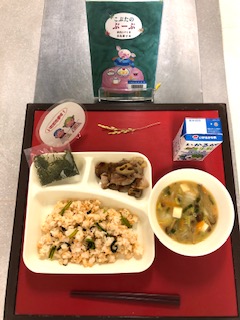 来週、月曜日の献立は、「ごはん・関東煮(うずら卵の個別対応献立)・あっさりキャベツ・のりのつくだ煮・牛乳」です。来週の献立も楽しみにしていてくださいね。