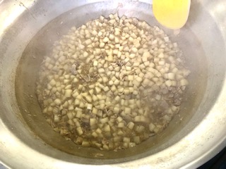 下段の写真は、だいこんの煮ものを煮ているところです。