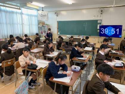 12月5日(木)3〜6年生は、4日と5日の2日間「学力経年調査」を実施しています。これはそれぞれの学年でこれまでに学習したことをふり返り、その結果を分析して次の学年や中学校に送っていって指導に生かすためのものです。