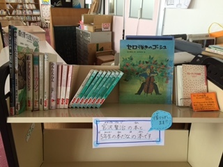 5年生では「注文の多い料理店」の作者、宮沢賢治さんの作品というようにコーナーが設けられています。他の学年についても同様です。