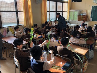 花市場さんのご協力で、3年生の児童がお花屋さんのお仕事体験をしました。