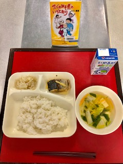 上段の写真は、本日の給食と給食図書です。本日の給食図書は、「サバのみそ煮のいうとおり」でした。病院に長期入院している子どもたちのお話でした。「サバのみそ煮のいうとおり」とはあるおまじないなのですが…気になる方は実際に読んでみてください。
