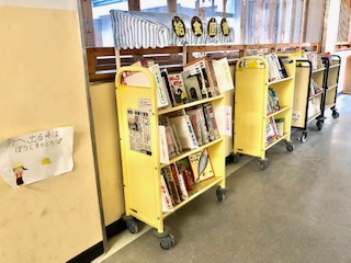 移動式給食図書コーナーは、2階の中央階段付近へ移動しました。