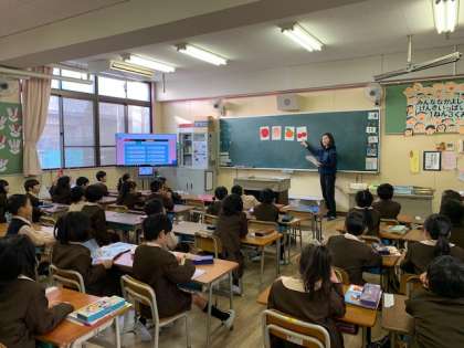 朝は3学期最初のTET(鶴南イングリッシュタイム)でした。1〜6年の全クラスが、英語の動画を見て発音練習をしたり、英語の歌を歌ったりして楽しく学習しました。