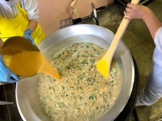 中段の写真は、親子丼の具にとき卵を加えて仕上げているところです。