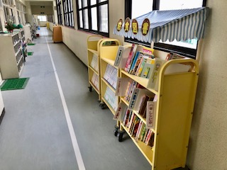移動式給食図書コーナーは、3階の4年4組の教室の前へ移動しました。