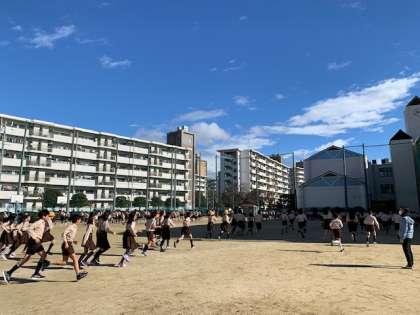 5,6年生は6分間で走るスピードも速いので、10周以上走った子もいます。走り終わった後は真っ赤な顔でハァハァ言いながら「体育でもまたがんばって走ります」と言っていました。