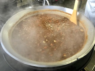 下段の写真は、ハヤシライスを煮込んでいるところです。