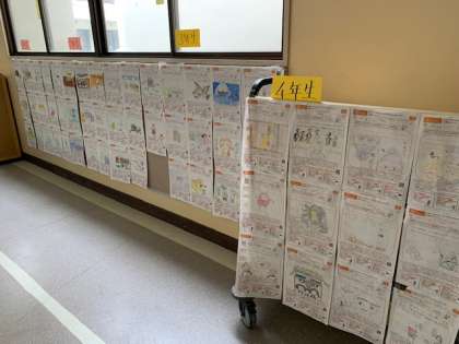 学校図書館の前の廊下には「私の選んだ本」のカードが掲示されています。これからもみんなで読書を楽しんでほしいですね。