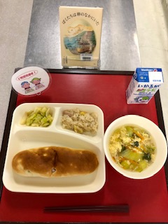 本日の給食を食べた児童の感想には、「中華おこわに栗が入っていて、美味しかったです。(6年生)」「中華おこわのもち米にいい味が付いていて美味しかったです。(5年生)」等がありました。