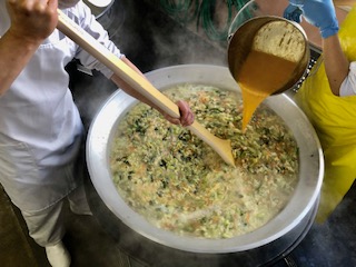下段の写真は、スープにとき卵を流し込んでいるところです。