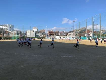 2年生は寒い中でも元気に運動場で体育をしました。かけ足、なわとびの後、サッカーで走り回りました。