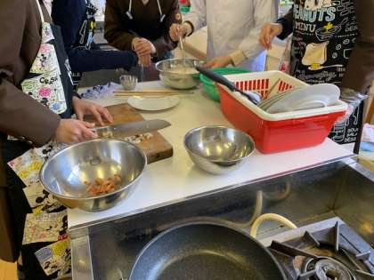 6年生は家庭科の調理実習でお好み焼きを作りました。班のメンバーで手分けしてキャベツを切ったり、小麦粉を溶いたりしました。