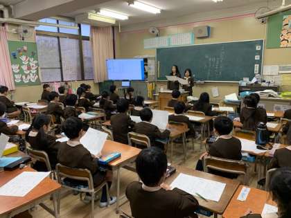 6年生の卒業を前に、1〜5年生が3月6日に「卒業を祝う会」を予定しています。今日の朝の時間は、児童会の人が各クラスに行って、歌とメッセージの練習をしました。6年生を心を込めて送り出せるように、みんな一生懸命練習していました。
