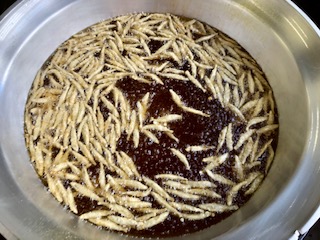 下段の写真は、きびなごてんぷらを揚げているところです。