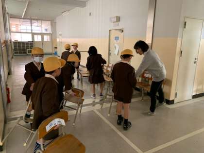 3月24日(火)校庭のサクラのつぼみが開く中を、今日も1〜5年が出席番号の前半と後半に分かれて登校してきました。修了式は新型コロナウィルス感染予防のため、運動場で一人一人の間隔を広くあけて行いました。5年生の代表が校長先生から修了証を授与されて、この一年間のがんばりと春休みの過ごし方についてのお話を聞き、校歌を歌って修了式を終わりました。教室では担任の先生から通知表をもらい、クラスとしては最後のお話を聞いて子どもたちは下校していきました。5年生は来年度の教室で使う机や椅子を運ぶのを手伝ってくれました。