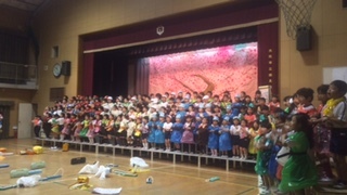 今日はたくさんの保護者の皆さんにきていただき、出演前の子どもたちは一歩講堂に入ったとたんちょっとびっくりしていましたが、いったん演技が始まるととても集中してこれまでで最高の演技を見せてくれました。