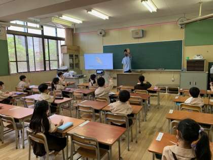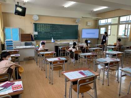 5月18日(月)朝から五月晴れのいいお天気になりました。16日(土)に入学オリエンテーションを終えて、今日から1年生を含めた登校日が始まりました。今日は1,3,5年生が出席番号で2または3分割で分散登校をしました。