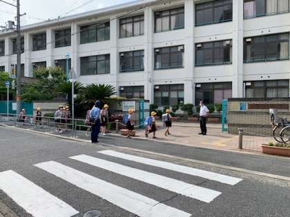 子どもたちの登校時には、鶴見警察のおまわりさんが来て安全を見守ってくださいました。
