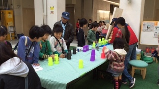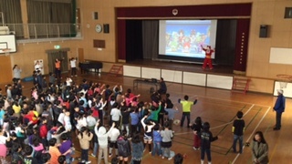 朝からたくさんの地域・PTAの方々が準備をして、開始時刻の9:30にはたくさんの子ども達が集まりました。はぐくみネットの橋本一夫さんと校長先生のあいさつに続いて舞台に登場したのは…なんと妖怪ウォッチの「じばにゃん」です。(実は手作りの着ぐるみを着たPTA役員さんでした!)スクリーンを見ながら数百人で「妖怪たいそう」を楽しみました。続けて運動場ではドッジボール、ストラックアウト、PK合戦。講堂では風船バレー、フロッカー、ビーンボウリング。ピロティではスピードスタックス、マグダーツが行われ、子どもたちは楽しく参加していました。ポイントによってお楽しみがあるということで、子どもたちはスタンプカードを手に飛び回っていました。午後からは大人対象に体力測定等が行われます。
