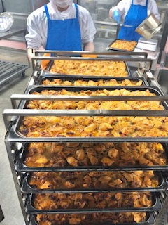 鶏肉のカレーマヨネーズ焼きは、にんにく、塩、カレー粉、マヨネーズ、ケチャップで下味をつけた鶏肉を、焼きもの機で蒸し焼きにした焼きものでした。