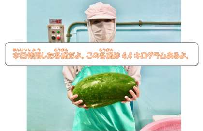 下段の写真は、本日のみそ汁の具に使用した冬瓜です。皮と種の部位を切り取って果肉のみを使用します。